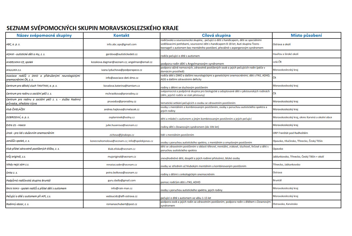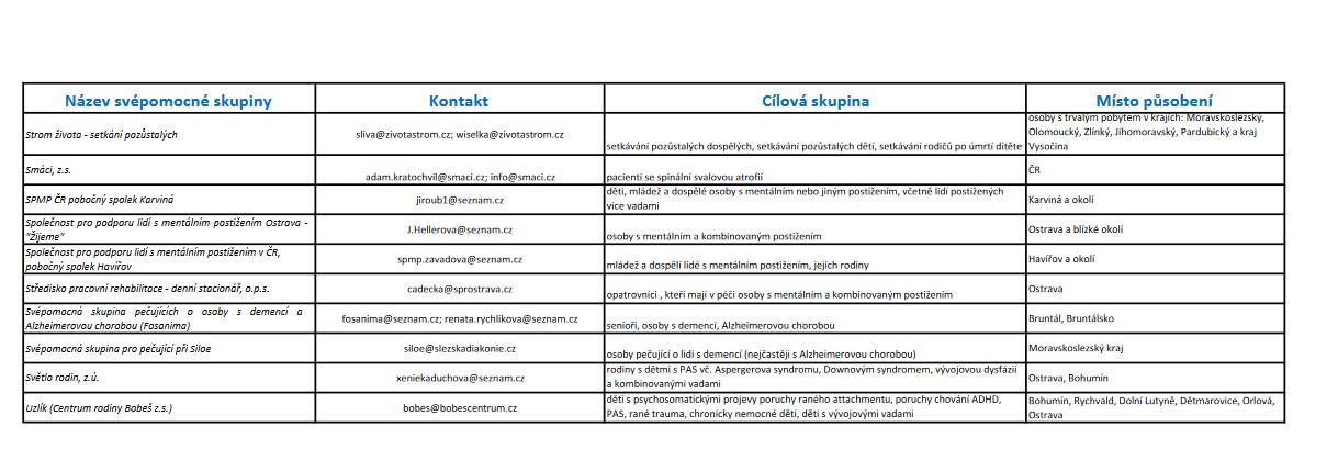 Seznam svépomocných skupin Moravskoslezského kraje při péči o osobu blízkou