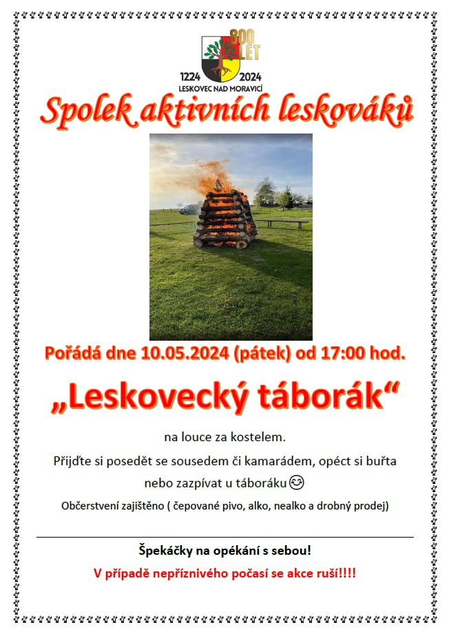 Spolek aktivních leskováků pořádá akci s názvem "Leskovecký táborák"