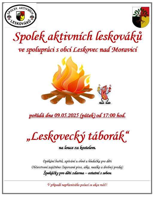 Spolek aktivních leskováků pořádá akci s názvem "Leskovecký táborák"