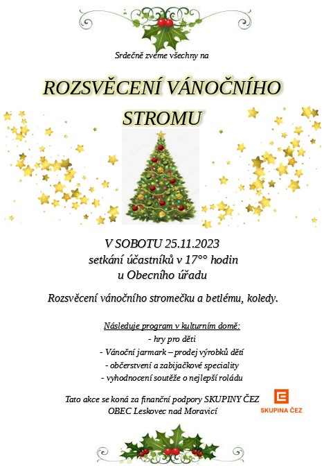Rozsvícení vánočního stromu 25.11.2023 v 17:00 hod.