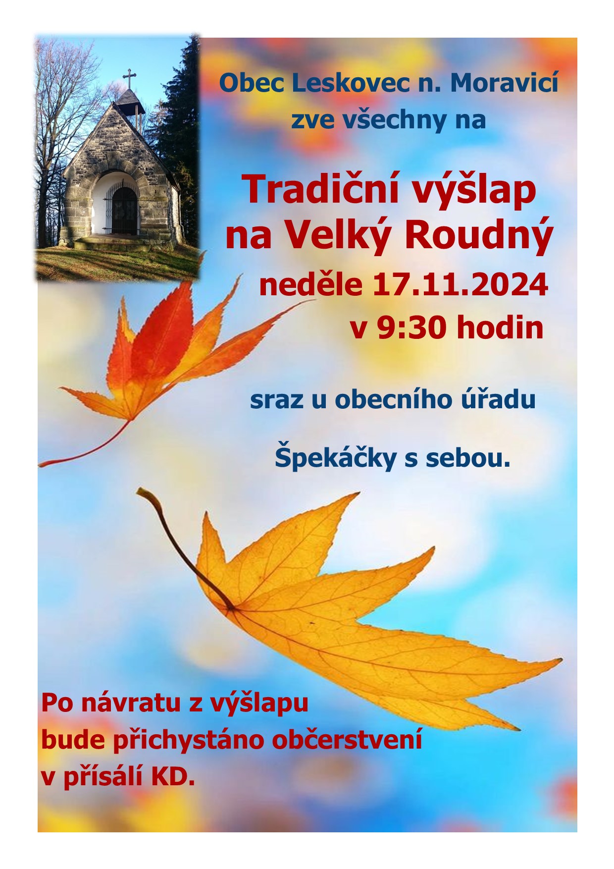 Obec Leskovec nad Moravicí zve na tradiční výšlap na neaktivní vulkán Velký Roudný, kde od r. 2007 stojí dřevěná rozhledna.